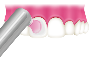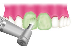 微粒子研磨ペーストを使用して、歯の表面や根元の部分を回転ブラシやカップなどできれいに磨き上げます。このとき歯ブラシで落とすことができない着色や、汚れの塊をこすり落とします。
